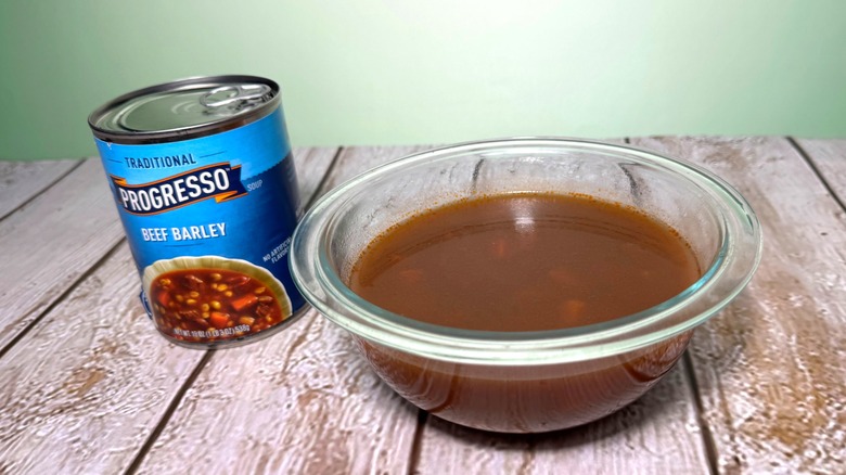 Progresso's beef barley is a soup to keep on hand for a cold day. The broth is on the thin side, but has a deep, rich beef flavor, enhanced by touches of sweetness and umami from tomato paste and chunks of tomato. While generally I preferred soups with at least slightly thicker broths to keep the other ingredients from sinking to the bottom, this was an exception, because the taste was worth a little extra stirring.