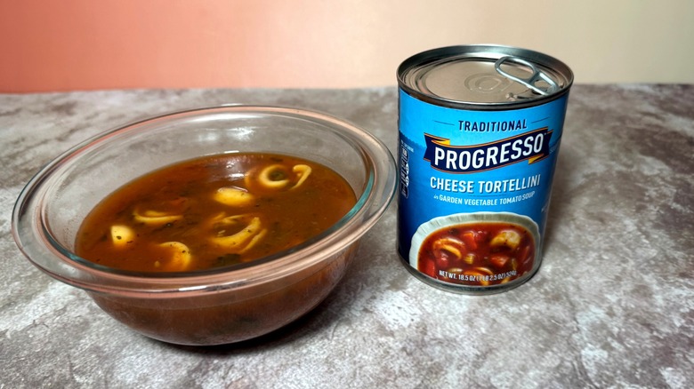 It's hard to be mad about any combination of dough, tomato, and cheese. In this variety, Progresso takes a vegetable-packed tomato broth and adds tortellini pasta pockets stuffed with cheese to make a soup that celebrates that classic trio of ingredients. Every element of this soup is tasty, but when they're put together, they don't quite add up to a cohesive whole.