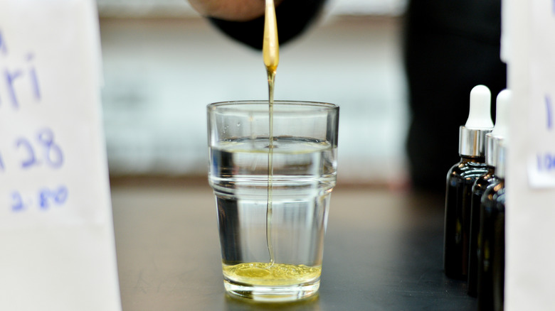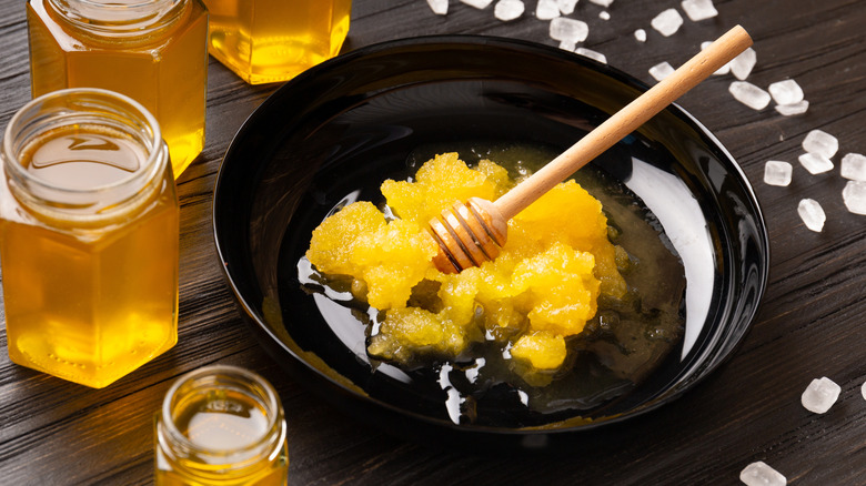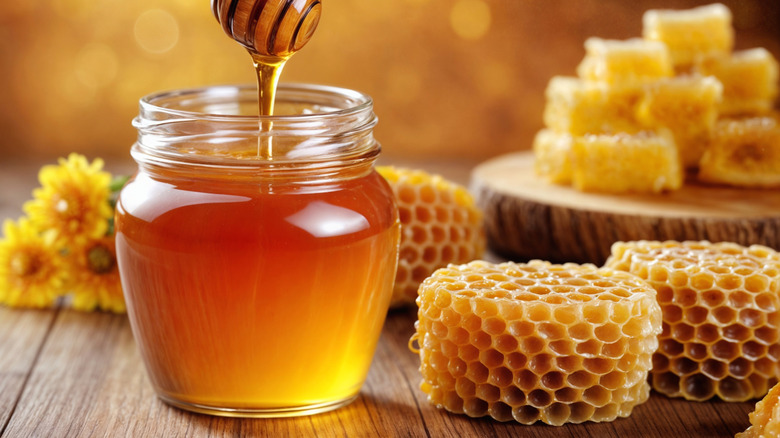 Another easy way to test if your honey is pure or not (without making your thumbnails sticky) is by dropping a drop of honey in a glass of water. If the honey forms a lump after sinking to the bottom, most likely it is unadulterated. But if it dissolves instantly, blending uniformly with water, chances are it's been adulterated with sugar or corn syrup. Why does this work? Pure honey is naturally concentrated, making it resistant to breaking down in water. It's packed with more sugar than water can typically hold at room temperature. Plus, its unique molecular structure — a mix of fructose and glucose — makes it less soluble in water, one of the reasons why honey never goes bad. Sugar syrups, on the other hand, are heavy in sucrose, which dissolves quickly and easily.