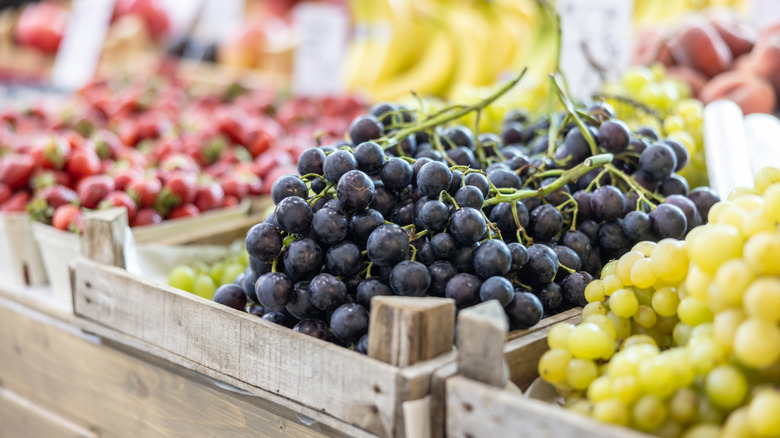 When you walk down the grape aisle at your local grocery store, you'll likely encounter a variety. From the common red and green seedless options to the super-sweet Cotton Candy variety. But how about something a little less common? Concord grapes are vibrant, deep purple fruits which stand out for their bold color, distinct flavor, and unique uses. But what exactly makes Concord grapes different from regular table grapes — you know, the ones most people eat for snacking or in their Waldorf chicken salad?
