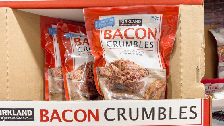 Well, bad news folks. Customers are finding issue with the Kirkland Bacon Crumbles, specifically noting the high fat to meat ratio. One shopper on Reddit pointed out that they "stopped purchasing [Kirkland Bacon Bits] around 2 years ago. Consistently seemed every single bag had more fat and gristle-y hard pieces than not. Haven't looked back." Another user echoes this statement, writing, "The crumbled bacon made by KS used to be so good... very little fatty bits. Now, however, fatty bits abound!" Looks like you might to avoid these crumbles and fry up your own bacon instead.