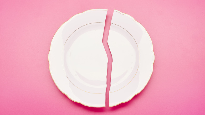 Most dishes aren't recyclable, but there are a few exceptions. Plastic options (like kids' plates) are sometimes accepted — this varies greatly by location, so check with your local recycling center to know for sure. Ask about glass and ceramics, too, while you're at it. If not, throw them in the trash. Since they're breakable, you may want to double-bag or wrap them in paper first.