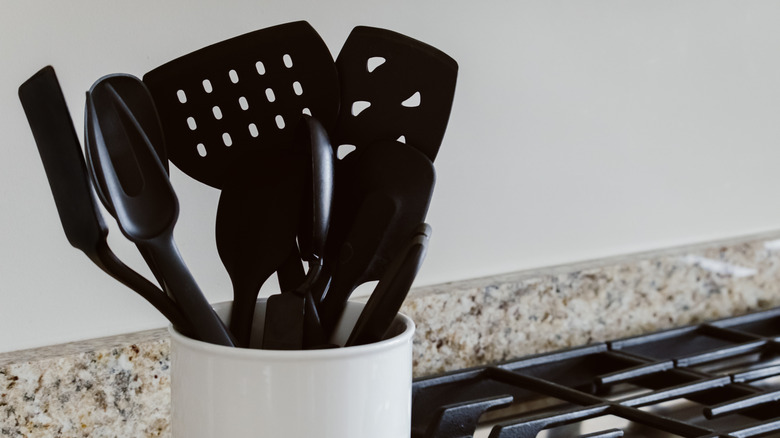 Any old, damaged cutlery you have should be replaced — whether it's your cooking utensils and serving spoons, or the knives, forks, and spoons you eat with. Cracks in these items might be a general safety hazard because if they break more while you're cooking or eating, they could leave pieces of plastic, wood, or metal in your food. And if you have black utensils, those should be tossed right away, no matter the condition they're in. According to a recent study by Toxic-Free Future and the Amsterdam Institute for Life and Environment, black plastic could be leaching toxic flame retardants into your food while cooking.
