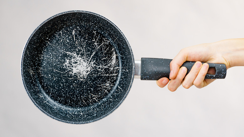 A collaborative study was published in Science of The Total Environment in 2024 that shows non-stick coatings in cookware released harmful forever chemicals when scratched or damaged. Study co-founder, Dr. Amy Lusher of NIVA Norway had this to say: "Our results were concerning — showing that plastic cookware is likely adding thousands of microplastics into the human diet each year... The health implications of ingesting microplastics remains unclear." What is clear is that it's better to be safe than sorry and toss any damaged cookware – especially if it has a non-stick coating.