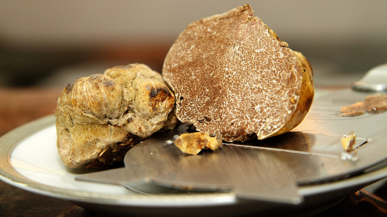 If you come across a fake truffle that somehow manages to make the exterior look authentic, then looking at the inside will help you determine for sure if it's real — and worth spending a substantial amount of money on. For Périgord black truffles, the inside will be either dark brown or black with "a dense network of fine, white, well-defined veins," Donald Young explains. On the other hand, if a truffle is fake, it may have fewer veins or a coloring that isn't as dark.