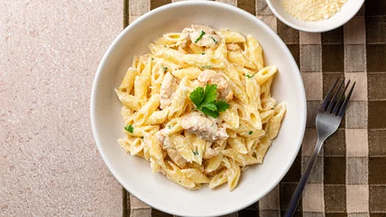 What's more, take a look at that ingredients list, folks. It's as long as your arm, and very clearly reveals an ultra-processed food, or UFP. These foods are classified by having more than one ingredient that you probably wouldn't find in your kitchen at home, and in Bertolli's product, you'll find additions like sodium phosphate, xanthan gum, potassium metabisulfite, soybean oil, modified food starch, and enzyme modified egg yolk. Sounds yummy, huh? Sadly, too, UFPs are typically high in salt and fat, which come at the expense of nutritional quality — as is the case with this Alfredo sauce. We'd skip this one.
