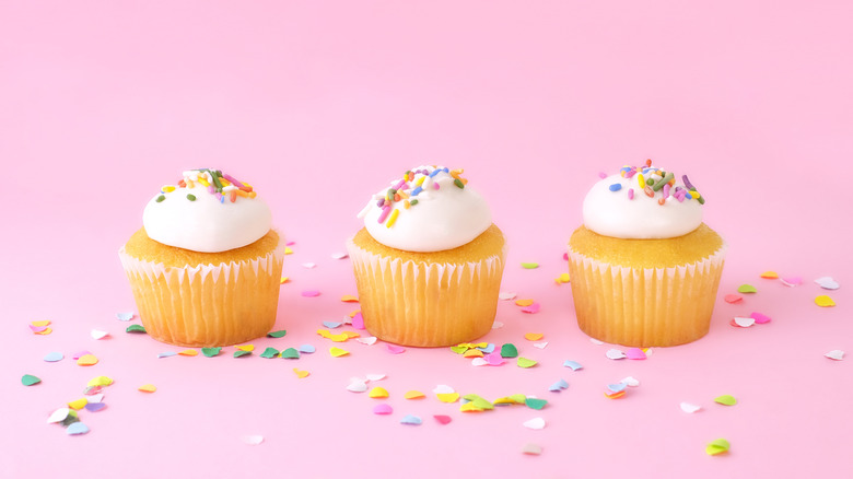 Mixing sprinkles into the cupcake batter won't change the taste much, except to infuse it with small, crunchy bits of sweetness. The hard crunch of the sprinkles also adds textural interest to contrast the light, fluffy cupcake and the smooth, creamy frosting. But, the best part is that you don't have to stick to standard rainbow or chocolate sprinkles. Today, there are dozens of sprinkles in various shapes, sizes, and colors, so you can choose an option that best suits your cupcakes.