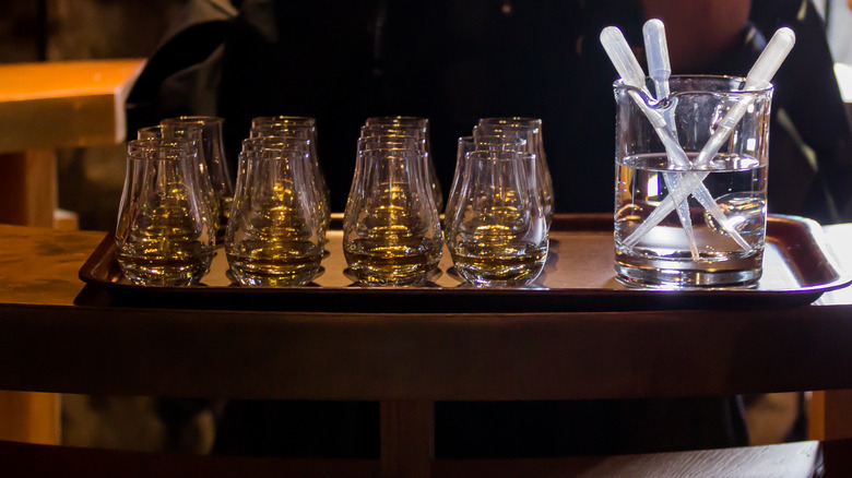 This isn't just me saying it, either. A scientific study published in Scientific Reports found that diluting whiskey in a glass contributes to a higher concentration of certain flavor compounds, particularly of guaiacol, a woody aromatic oil that gives bourbon its smokiness. That dilution can occur if you're serving bourbon on the rocks, of course — but if you're serving it neat, you'll want a little water.
