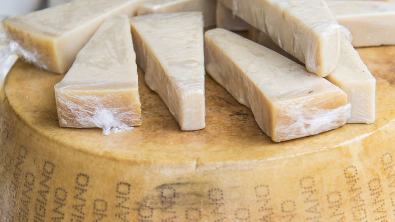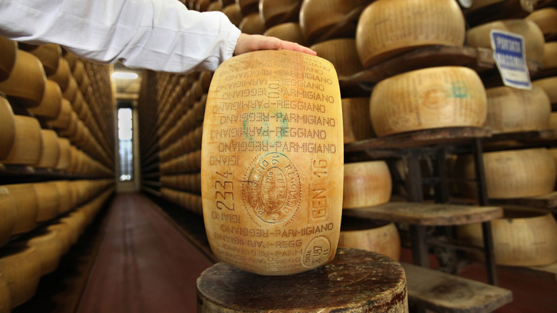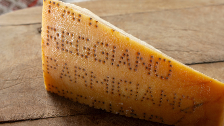 If you've ever bitten into a chunk of Parmigiano Reggiano and noticed a delightful crunch, those are calcium lactate crystals, formed as lactose and calcium undergo natural chemical changes during the aging process. So if your cheese has them, it's a sure sign of high-quality, well-aged Parmigiano Reggiano. However, many companies in the U.S. don't adhere to the strict aging requirements for their "parmesan" so that's why checking the age of your cheese is a great way to discern between the real and the fake. If that detail is missing, it's best to look the other way.
