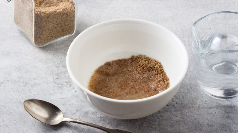Meanwhile, if you're going the flax egg route, then the first thing that you'll have to do is make the flax eggs, which require a bit of time — after mixing the flaxseed meal with water, it needs to sit for about 10 to 15 minutes to thicken up. Vora says, "This can then be whisked into the wet ingredients along with vegan butter, oil, or sour cream for added moisture."