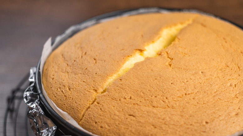 Deden Putra says, "When the eggs in the mixture get overwhipped, you incorporate too much air. In the baking process, that air wants to go somewhere and can cause the top or the sides of the cake to crack." The chef points out that this can happen with other baked goods, such as bread loaves, but it's especially notable with cheesecake because of the visible crack it causes.