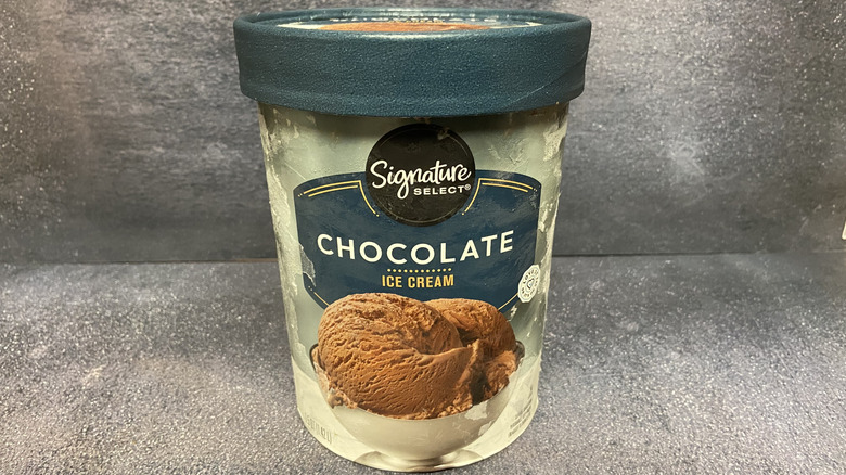 Signature Select is an in-house brand that's owned by Albertsons. The brand can also be found at other grocery stores owned by Albertsons, such as Safeway, Jewel-Osco, and Vons among others. Before this ranking, I'd never tried Signature Select ice cream before, so I wasn't sure what to expect, but I ended up being pleasantly surprised. The texture of Signature Select's chocolate ice cream is extra creamy. After my first taste of it, the ice cream coated the spoon and the inside of my mouth with a velvety sheen of chocolate, unlike some of the previous ice creams in this ranking that seemed to dissolve quickly.