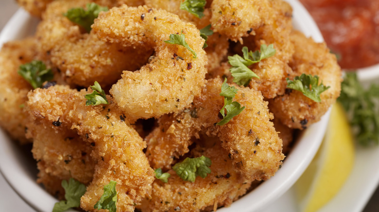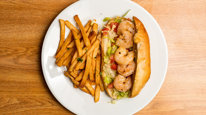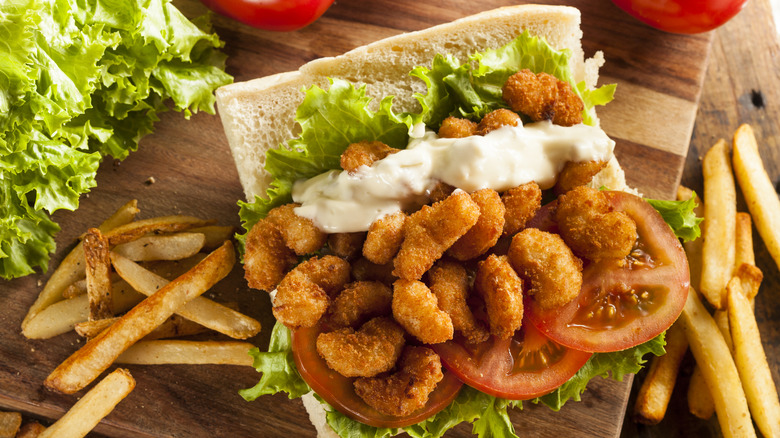 Putting seafood in po-boys also keeps them slightly lighter, and gives you a good amount of lean protein too. Shrimp, for example, is naturally low in fat while high in protein, and rich in phosphorus, magnesium, copper, and zinc. Having said this, heavily breaded shrimp is naturally going to change the nutritional balance a bit — but no one's fooling themselves that this is a healthy sandwich, are they?