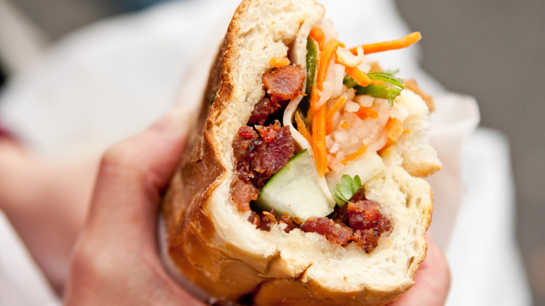 Both sandwiches have also been a cornerstone of working-class communities, providing relatively cheap sustenance in a filling form. Although po-boys are a little bit bolder and meatier, both banh mi and po-boys generally contain a variety of ingredients that hit different flavor points. Seeing the similarities, some Louisiana food vendors have started to offer a mash-up of the two sandwiches — and although these tend more towards a po-boy style than a banh mi one, it's an acknowledgment of their closeness and their adaptability as sandwiches.