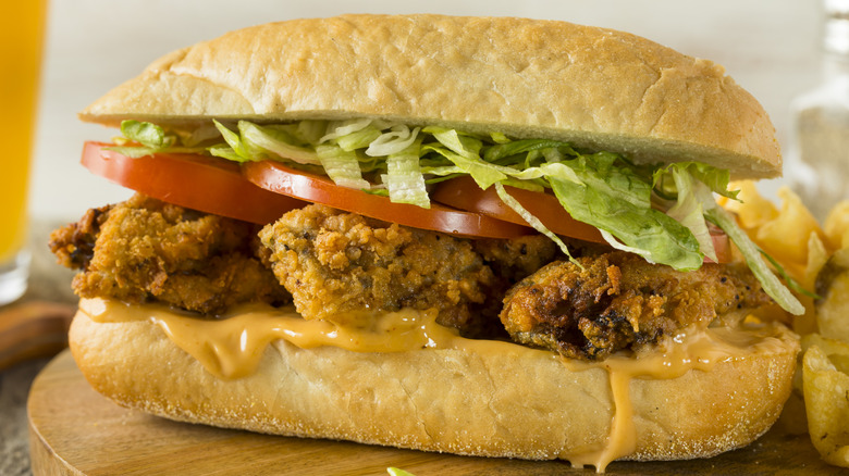 You have to be careful with the amount of sauce you add, too, as too much will start to soak the bread. Additionally, make sure that you're not overloading your po-boy with wet fillings like moist pulled pork or roast beef. It may be tempting to do so, but you'll want to balance things out with dry ingredients so that your sandwich doesn't turn into soup.