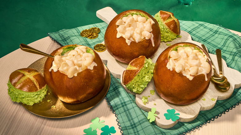 The limited-time Pot of Gold bread bowl will be green on the inside and filled with the chain's macaroni and cheese bursting out of the top. Limited quantities will be available in select markets — such as Boston, Chicago, New York City, and St. Louis — on March 16 and 17.