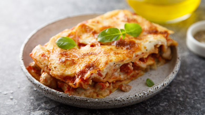 In her turkey lasagna, Ina Garten likes to use 1 ½ pounds of Italian turkey sausage. Importantly, one half of the turkey sausage she adds is sweet, while the other half is spicy. Sweet and spicy is a classic culinary combination that will elevate your turkey lasagna by giving it a more complex flavor profile. You also get the same rich, herbal notes from the turkey sausage that you would with beef or pork. Garten recommends crumbling the turkey sausage and sautéing it in olive oil with chopped onions and garlic before adding tomatoes for your sauce.