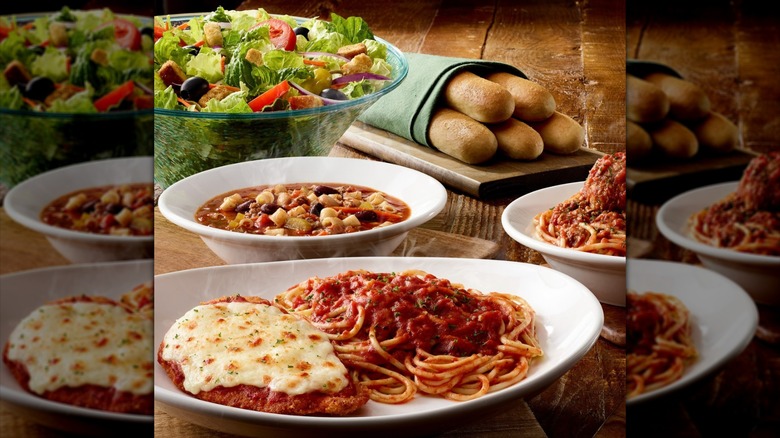 For anyone unfamiliar, the Buy One, Take One deal means your entree may be eligible to come with a full-on heat-and-serve second entree for you to take home to enjoy later. The deal also still includes either a soup or salad, as well as an unlimited amount of those iconic breadsticks (which have a surprisingly simple secret to their tastiness) — all for one affordable price.