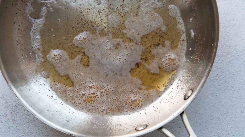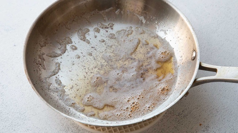 Brown butter is not an incredibly difficult thing to make — after all, it does involve a single ingredient — but that doesn't mean that it's completely foolproof. The biggest worry is ending up with burnt brown butter, but Shungu has some helpful tips to ensure that you whip up the ingredient with ease. For starters, make sure you're using the right pan. "Use a medium-sized skillet for 4–6 tablespoons of butter," she says. "It allows the butter to brown more evenly than a small skillet."