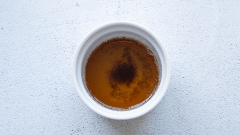 Secondly, make sure you keep things moving the whole time, otherwise the butter might brown unevenly. Next up, you'll want to look out for tell-tale signs that your brown butter is ready to come off the heat. "The butter will start to pop and sizzle rapidly when it's about to turn brown on the bottom," Shungu explains. "Wear an oven glove if you're concerned about it splattering onto your hands." Finally, once the butter is ready to go, make sure you transfer it to a bowl even after you take it off the heat — if you keep it in the pan, it will likely end up burning.