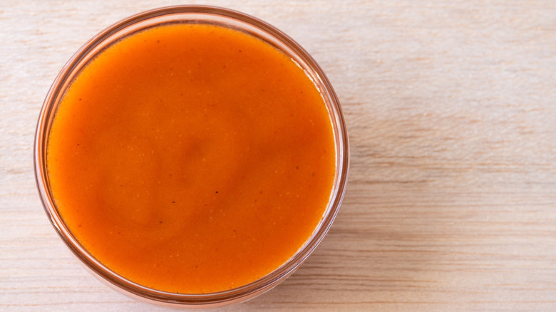 Add buffalo sauce to meat during cooking