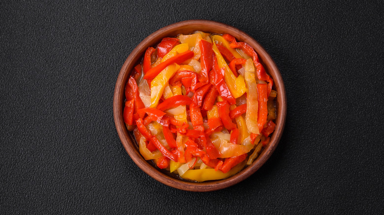Add sautéed onions and peppers