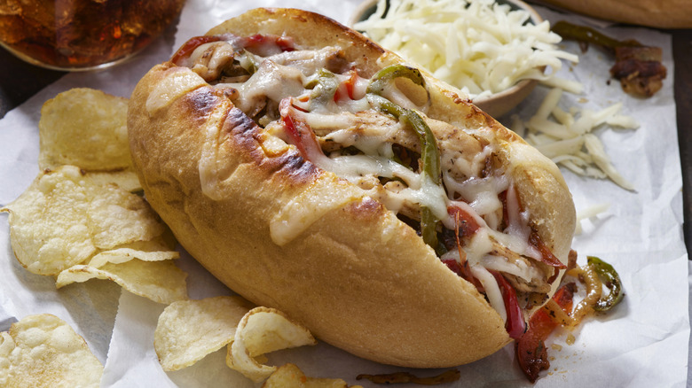 If you're ordering a Philly cheesesteak in most restaurants through the greater Philadelphia region, you'll likely be given the option to make it a hoagie. In some places, this is listed as a separate menu item, while at other venues it's listed as an optional upgrade. Opting for a cheesesteak hoagie means adding lettuce, tomato, and raw sliced onion to the sandwich. This simple upgrade is one of my favorites because the fresh produce adds a nice flavor balance to all the savory meat and cheese — and it's also much more filling.