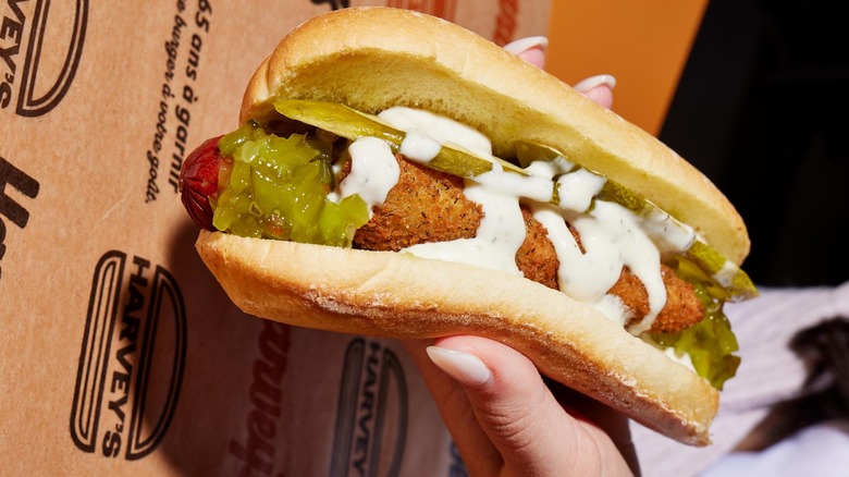 The chain's menu offers 10 different stand-alone burgers, along with a "Garnish Counter." Here, diners can build the ultimate burger, the burger they've been dreaming of, one burger to rule them all, and so on. With unique toppings such as cucumber, and 11 different sauces to choose from, the options are limitless. The classic Harv sauce is always a winner, but the addition of onion rings, cheese, and bacon put a Harvey's burger over the top. The chain even offers hot peppers and ghost pepper sauce for those who appreciate a little spice in their life — or at least on top of their burgers.