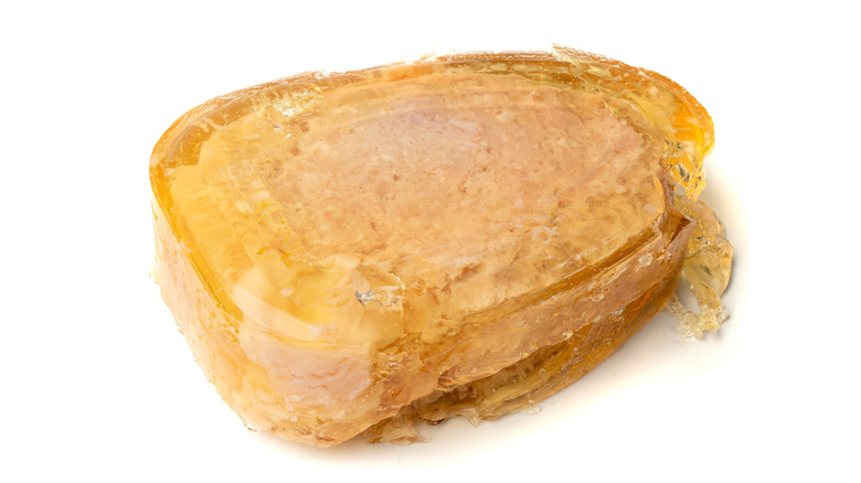 Most canned ham will come with a generous layer of gelatin lurking on its surface. To the uninitiated, this can seem like part of the deal. After all, the gelatin is edible, and it has a somewhat savory taste obtained from absorbing the ham's umami notes as it sits in the can — so why wouldn't you eat it?