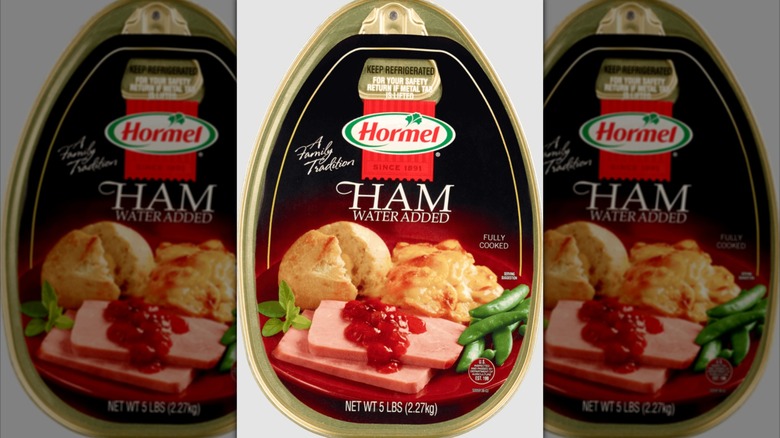 The other type is the non-shelf stable kind, with the cans needing to be refrigerated. Some of the most popular products out there, like Hormel Canned Ham, are this style. This type of canned ham has a fairly long shelf life too, but it'll generally only be edible for around six to nine months, and it'll need to be kept cold before use. These two different types taste pretty similar, but crucially, it can be easy to mistake a canned ham that needs refrigeration for one that doesn't and pop it in your cupboard, causing it to spoil. Always check the label on your product, so that you don't store it incorrectly.