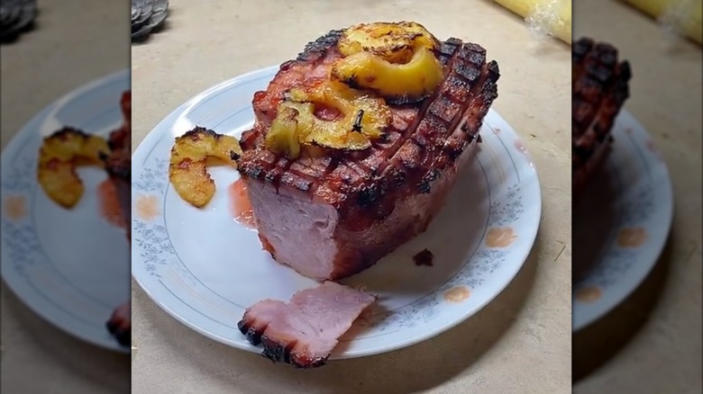 One of the key selling points of canned ham is that you can eat it straight from the can itself, without any further preparation or cooking required. While that might be quick and convenient, if you do this you're likely missing out on a huge amount of flavor. You can cook canned ham just as you would a joint of meat bought from the fresh section in the supermarket, and when you prepare it right, it'll remain juicy while allowing you to push past that slightly artificial taste that some brands are plagued with.