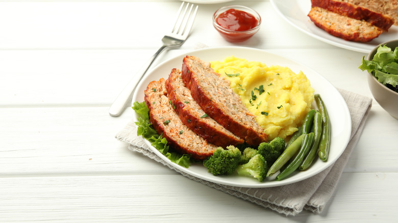 Classic beef meatloaf is a soul-soothing comfort food that's become a mainstay in countless American households. A versatile dish with countless unique variations, everyone has a favorite homemade recipe — and everyone has a favorite local or chain restaurant meatloaf. But, no matter how hard you try, it can feel like meatloaf always tastes better at a restaurant. And, there are several reasons for that.