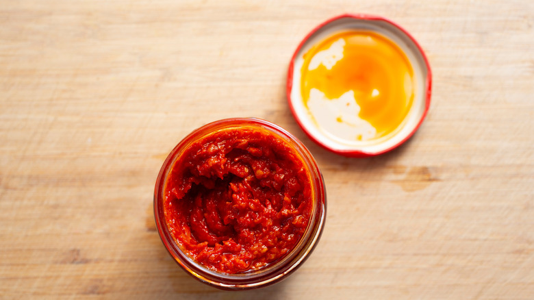 If you want to turn up the heat in shakshuka, egg dishes, avocado toast, or breakfast bowls, you'll want to invest in a jar of harissa paste. Harissa is a chili paste that's often found in North African countries, including Morocco, Tunisia, and Algeria. It's made from a combination of ground chiles, olive oil, garlic, and spices, including cumin and coriander. The resulting paste is spicy but not overly hot, and lends a warmth to dishes that's complex, smoky, and intensely flavorful.
