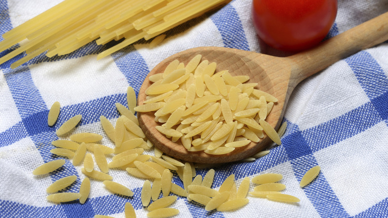 When you think of Mediterranean countries and foods, Italy and pasta will likely come to mind. While there's no shortage of different types of pasta shapes to choose from, one that's uniquely well-suited to breakfast dishes is orzo. This dainty pasta is often misidentified as a type of rice, owing to its similar shape. When cooked, it has a delightful creamy, yet al dente, texture and a flavor that's generally slightly nutty, thanks to being made with high-quality durum wheat.