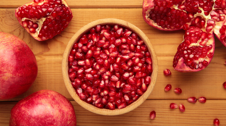 In case you're not familiar with these fruit, pomegranate seeds are absolutely meant to be eaten and are commonly consumed as part of the Mediterranean diet. These ruby-red jewels are tart, sweet, crunchy, and juicy, lending both flavor and texture to all kinds of dishes. What makes pomegranate seeds so delightful is that their unique characteristics make them perform just as well in sweeter breakfasts, like granola, smoothies, pancakes, or waffles, as they do in savory egg dishes.