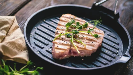 You can avoid this by marinating your tuna steaks for no more than two hours. If your marinade doesn't have any acid in it, you might be able to get away with slightly longer, but if you've added lemon juice or vinegar, then going for longer than this is a mistake. The good news is that you likely won't need this long, as the looser structure of tuna steak encourages the marinade to work its way into the meat much more quickly. Once you've removed your meat from the marinade, ensure you cook it as soon as possible.