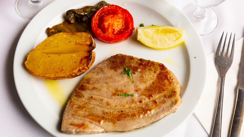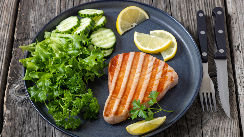 There's one surefire way to ruin the experience of eating tuna steak, and that's by serving it with the wrong accompaniments. If you're serving a nicely grilled piece of tuna, you'll want to make sure what you serve it with lifts up the fish, instead of overpowering and drowning it. Tuna steak has a meaty flavor, but it's also pretty delicate — and if you're opting to serve it with cheesy mashed potatoes or a heavy sauce, you're not giving it a chance to shine.