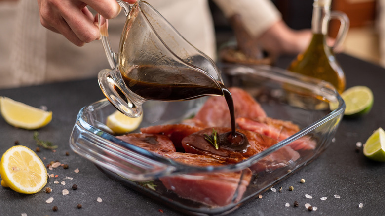 Marinating tuna steaks is one of the easiest ways to add a huge amount of flavor to the meat, while still keeping it moist. However, it's very easy to take things too far. Just like when marinating beef steak, a marinade will alter the texture of a tuna steak and soften it, with the acids in the marinade serving to break down its protein structure. However, tuna is more delicate and less dense than other meats, and if you leave it in a marinade for too long, its texture will completely break down. You'll end up with a mushy piece of meat that doesn't sear properly, and which has lost all of its delicate flavor notes.