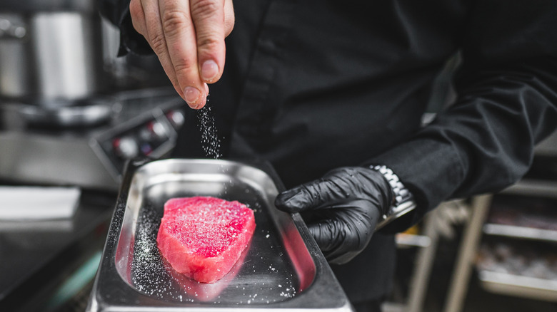 When do you season your meat? If you know what you're doing, you'll do it before you cook it — but unfortunately, a lot of people forget how important this is. Instead, they add seasonings to their tuna steak only after it's cooked, and then they're confused as to why that expensive cut of fish they just bought has no fullness of flavor and an overly salty top note.
