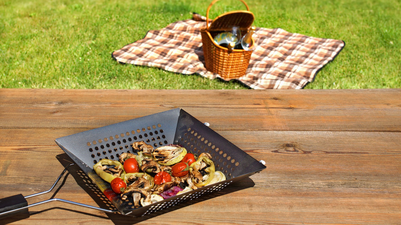 Wire baskets are the least intrusive on the grill and allow the most space between veggies and open flames. However, stainless steel baskets are sometimes easier to handle at home and come in multiple sizes. They're also easier to clean and can hold small-diced vegetables. You'll still get some caramelization from hot stainless steel, but sacrifice direct grill marks. Either way, it's better than losing vegetables to the forbidden ash lands at the bottom of your grates.