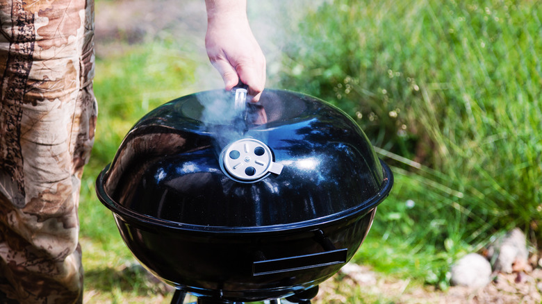 Most grills have exterior thermometers which show the interior temperature of the grill, but not the temperature of the food itself. However, this is a good way to determine how much heat is lost each time the lid is opened. I've seen many a grill lose its flame from a gusty wind, and re-igniting coals in the middle of grilling is not a good time. Trusting the process is a big part of even cooking and your guests will thank you for keeping that heat inside.