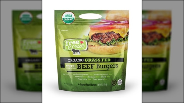 The Free Graze brand gets its 100% real beef from American ranchers. These farm-raised, free-roaming cows are never fed any hormones or synthetic antibiotics. Free from animal byproducts, preservatives, and artificial ingredients, the final product lacks everything but flavor. You can shop for a 12-pack of Free Graze's ⅓-pound Wagyu-style burgers at Sam's Club locations, if in stock, or have Instacart deliver a 4-count box (or two) of the brand's ¼-pound organic beef patties to your doorstep, courtesy of your neighborhood Kroger.