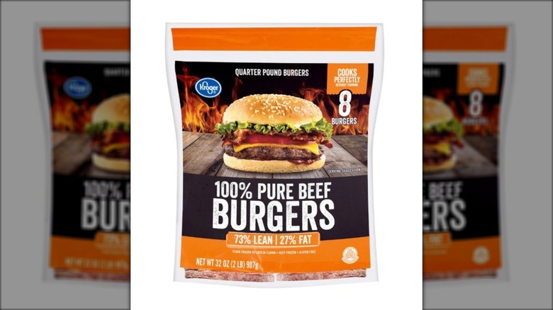 Kroger's customers have a lot of good things to say about these pure-beef burgers, with one saying that these are their absolute favorite burgers and the only ones they'll buy now. Others tout that these tasty burgers are easy to use and that their low cost per pound makes them a good buy, especially when they're on sale. Kroger has a large family of companies spanning 35 states where you can easily grab a package of frozen 100% pure beef burgers. You can also find it in stores like Fry's, King Soopers, and Smith's Food and Drug.