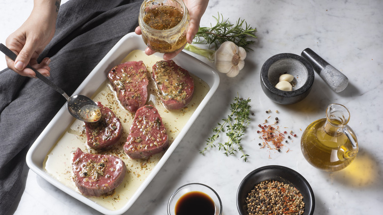 With traditional chicken fried steaks, the oil it's cooked in plays a part in the overall flavor of the dish. Specifically, according to Art Smith, it provides an essential "richness" to the flavor. Since, with the air fryer method, you won't be submerging the steaks in a pot of oil, a marinade is necessary to take the flavor of the chicken fried steak to the next level.