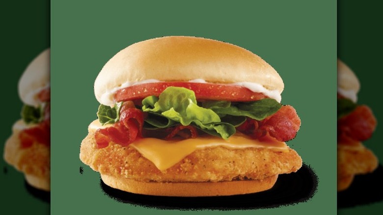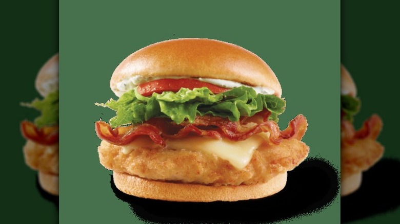 If you do get pushback when ordering the Chicken Baconator, you can also ask for a Crispy Chicken BLT with no veggies. The chicken, cheese, bacon, and mayo are the foundation — now all your sandwich needs is an extra chicken patty and extra bacon to summit that meaty Baconator mountain. Heads up, though: the Crispy Chicken BLT does not have ketchup. You'll need to either ask for ketchup or squeeze some from a packet if you want the extra savory bite from ketchup.