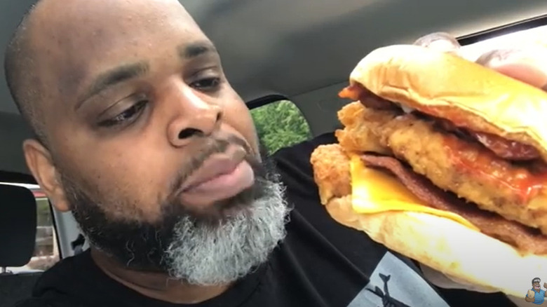 Do you love the idea of a sandwich with six slices of bacon, ketchup, and mayo, but don't want to eat beef? Good news, you can totally order a Baconator with chicken patties. There's a truly wonderful crunch that comes from biting into fried chicken and bacon at the same time. Why not double your pleasure, triple your fun, right? Pro tip, though: You may want to keep this sandwich wrapped up while you eat it. In our experience, the double chicken patty can get a touch slippery.
