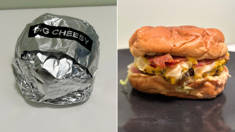 I've always heard great things about Five Guys and, in fact, it's my daughter's boyfriend's absolute favorite burger place ever. However, this was my first personal experience with them — and with such high praises from people I know, I had big hopes. I'm not going to say those hopes were dashed, but I will say that this bacon cheeseburger didn't quite live up to my expectations. The bacon wasn't great by itself, but it did add an extra layer of flavor to the burger. There were two patties instead of one, which was nice. The toppings were fresh, contributing a nice sweet and earthy contrast to the umami beef patty. Overall, it was an okay burger that I would eat again, but I don't think I'd go out of my way to do so.