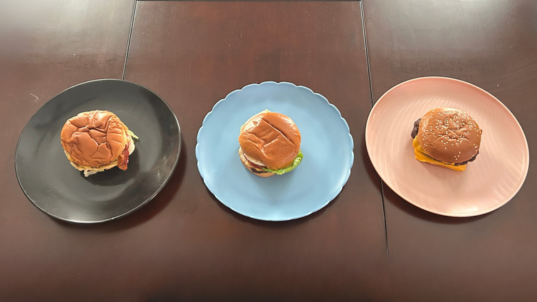 Sonic's take on the bacon cheeseburger came in dead last by a far margin and it was the only burger on this list that I couldn't finish eating — if I had, I have zero doubts that my stomach would have suffered the consequences. In fact, it was so greasy that it felt slick and a few bites made me feel nauseous. What's worse is that it didn't even taste like garlic butter (which is what I assume the slickness was from), but instead it tasted strongly of onions. To add to the heavy feeling on my stomach, the burger came with so much mayo that it became the predominant taste after the weird onion one.