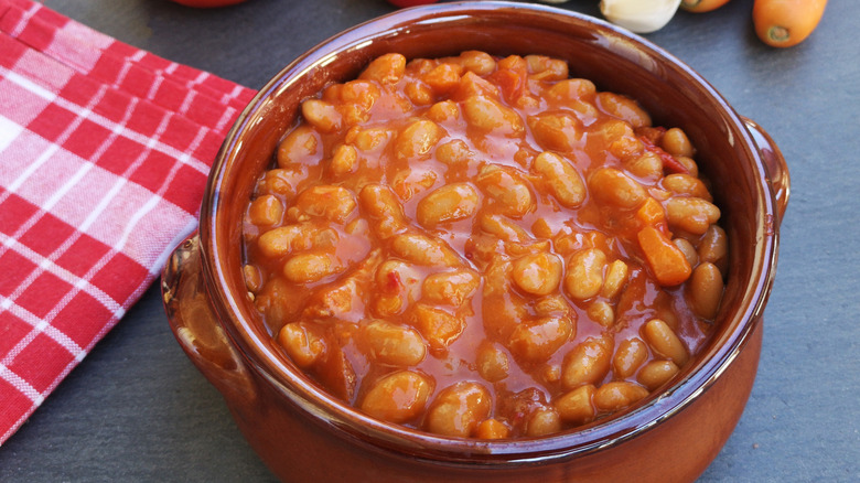 Baked beans are a barbecue staple, and so it's no surprise that at one time you could get them at Texas Roadhouse. The steak joint's baked beans were one of the most distinctive sides it had, and while it wasn't the most popular item on the menu, plenty of people loved it for its balance of sweet, savory, and salty notes. It's amazing that some folks have remembered these beans at all, as they seemed to be a pretty minor item which first cropped up in Texas Roadhouse's more than a decade ago. They haven't been seen for years now — but that hasn't stopped people thinking of them fondly and trying to track down copycat recipes.