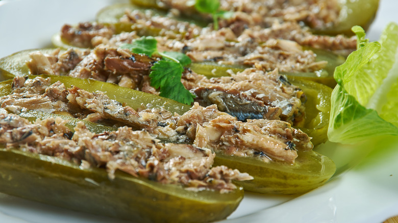 Searching for a delicious appetizer or an alternative to bread for a satisfying, low-carb lunch? Store-bought pickles are the ingredient you have been looking for. Indeed, pickles can be completely transformed by stuffing them with any number of different items, including cheese, tuna salad, egg salad, chicken salad, or even a savory ground meat mixture. These can be served as-is or tossed into the oven or air fryer to crisp up for a firmer texture and more al dente bite.